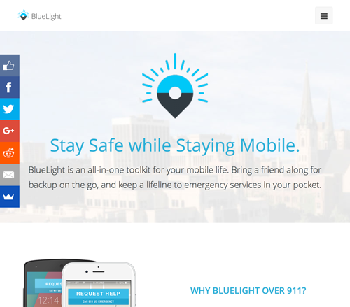 Homepage for BlueLight website with overview of the product