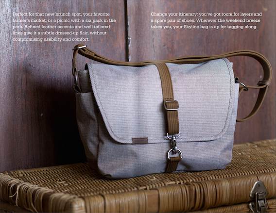 Collection and product copy, featured in print brochures and on website, for upscale Timbuk2 Skyline Collection